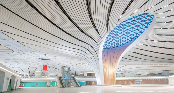 新机场总占地面积约27万平方米,核心区采用铝合金结构与玻璃一体化围护系统,形成简洁通透的室内空间效果。