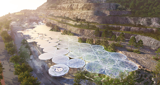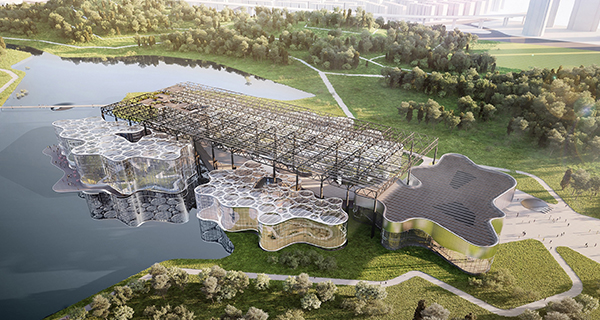 全球首个采用了新型密柱筒支撑-张弦铝合金网格结构体系的温室建筑。