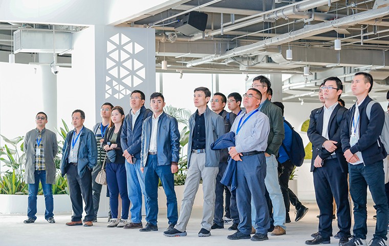 随后,全体专家学者移步至施工现场,参观G60科创云廊,并拍照合影留念。